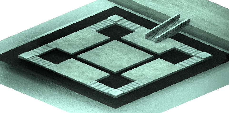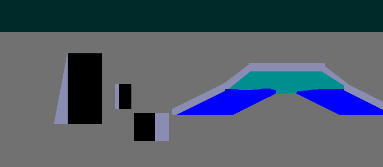 The very first version of the test room, very bland, empty, but efficient for simple collisions and depth-sorting.