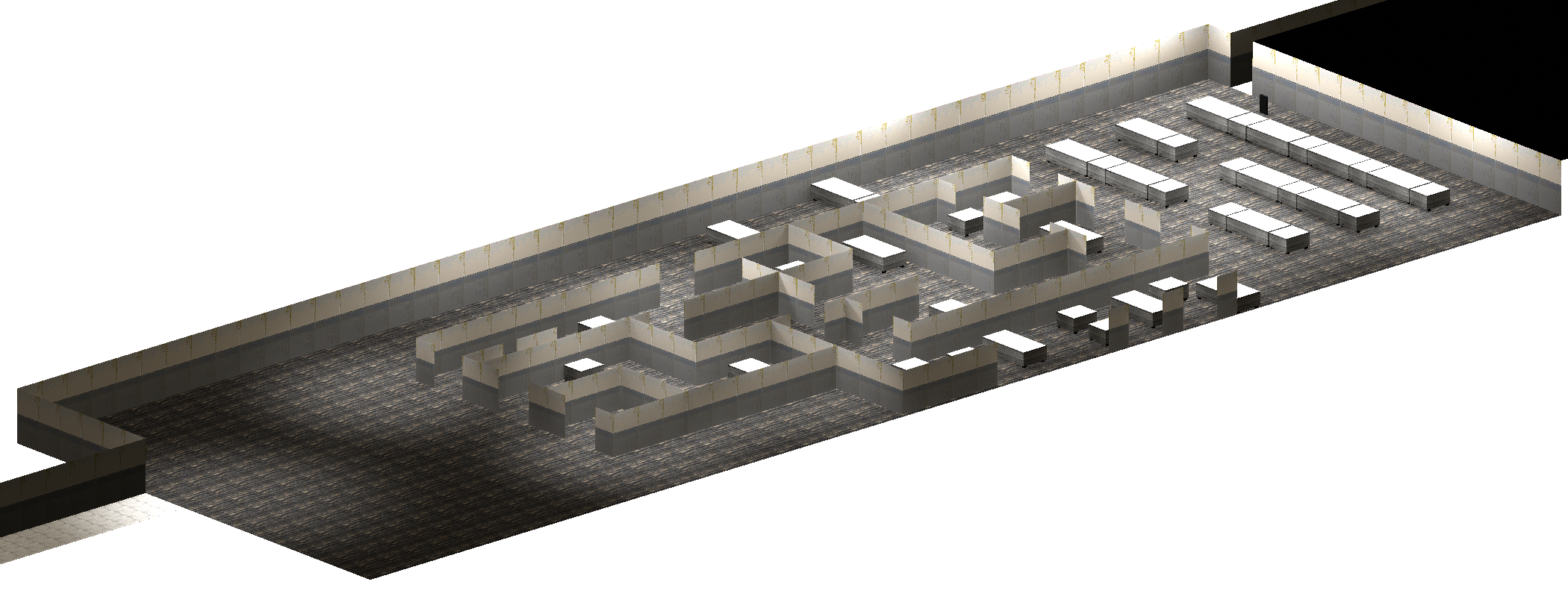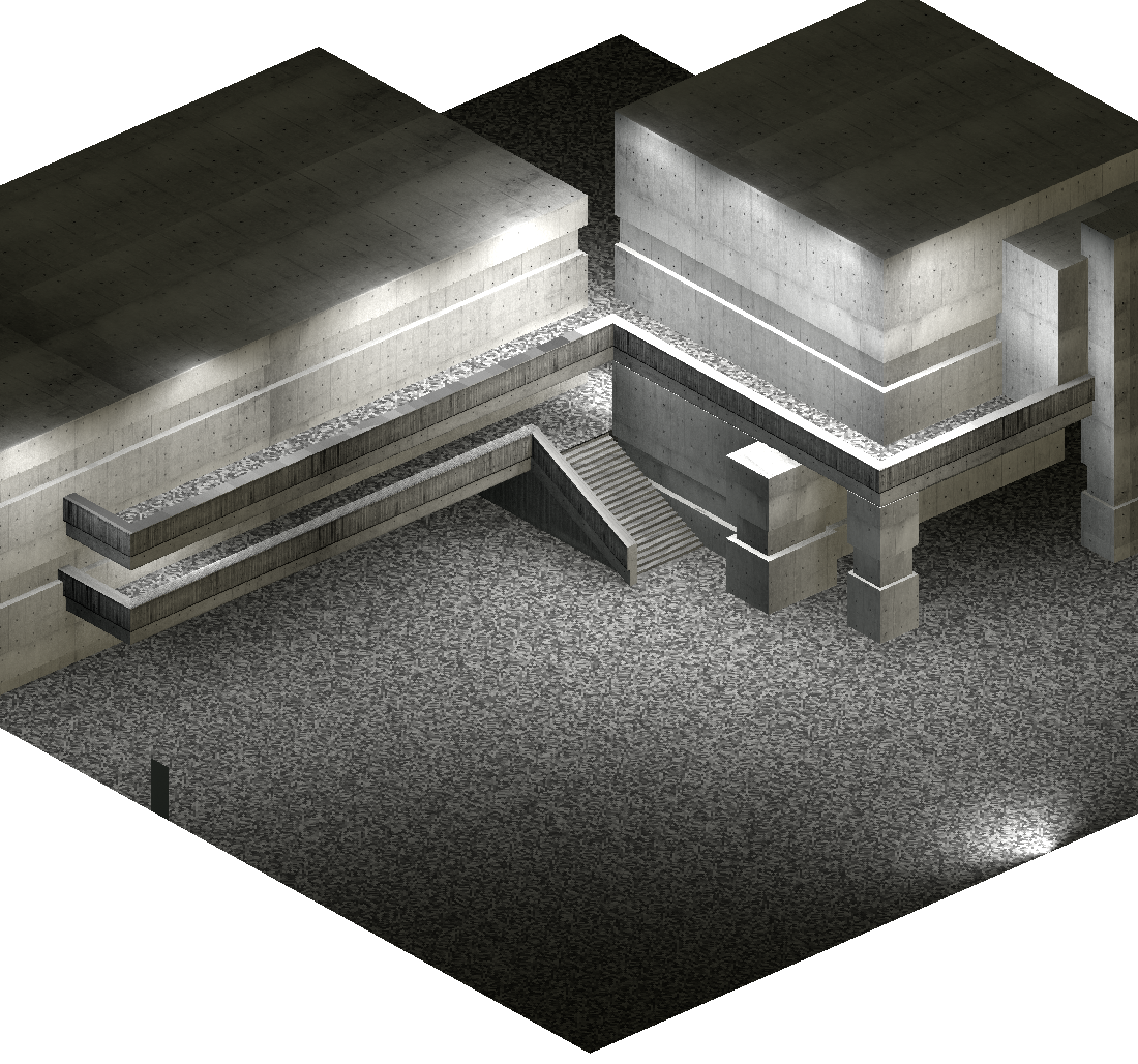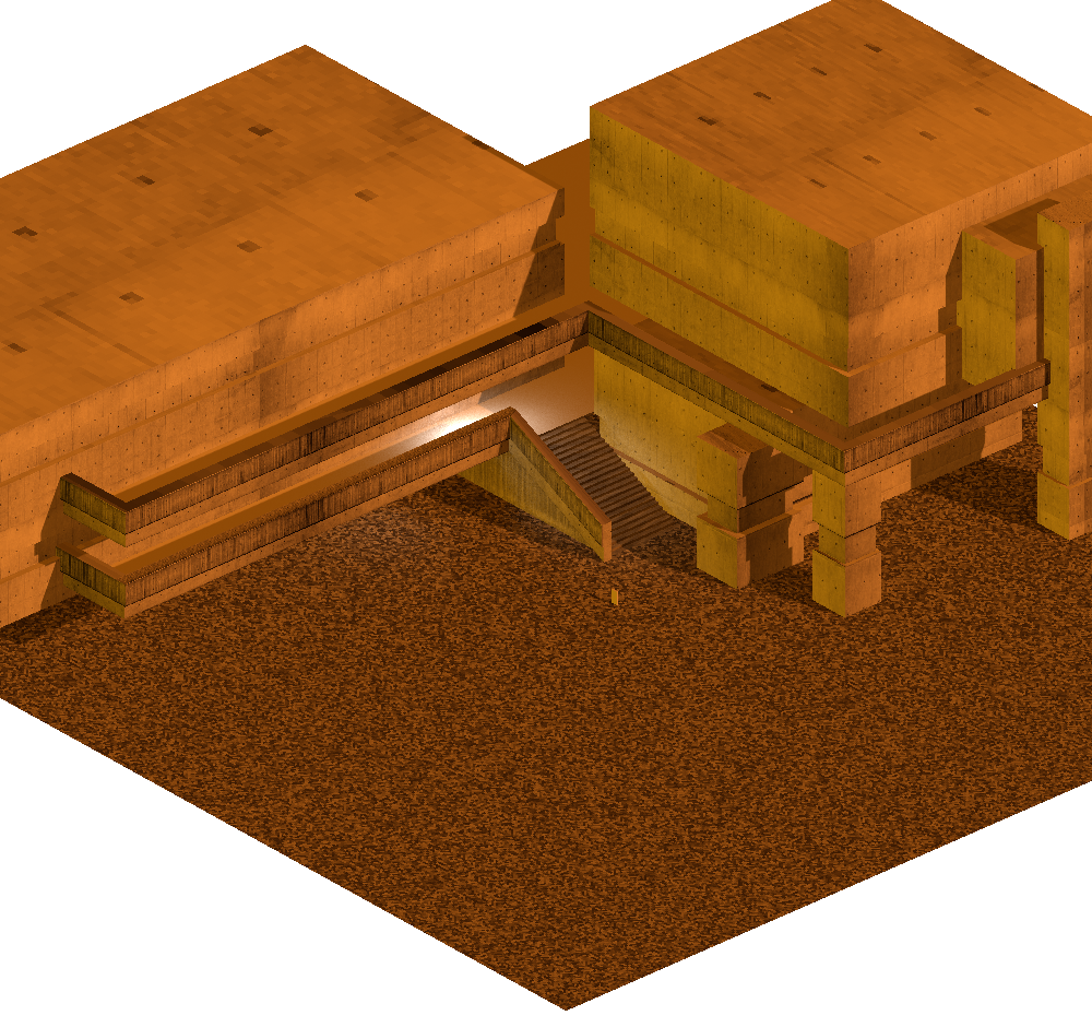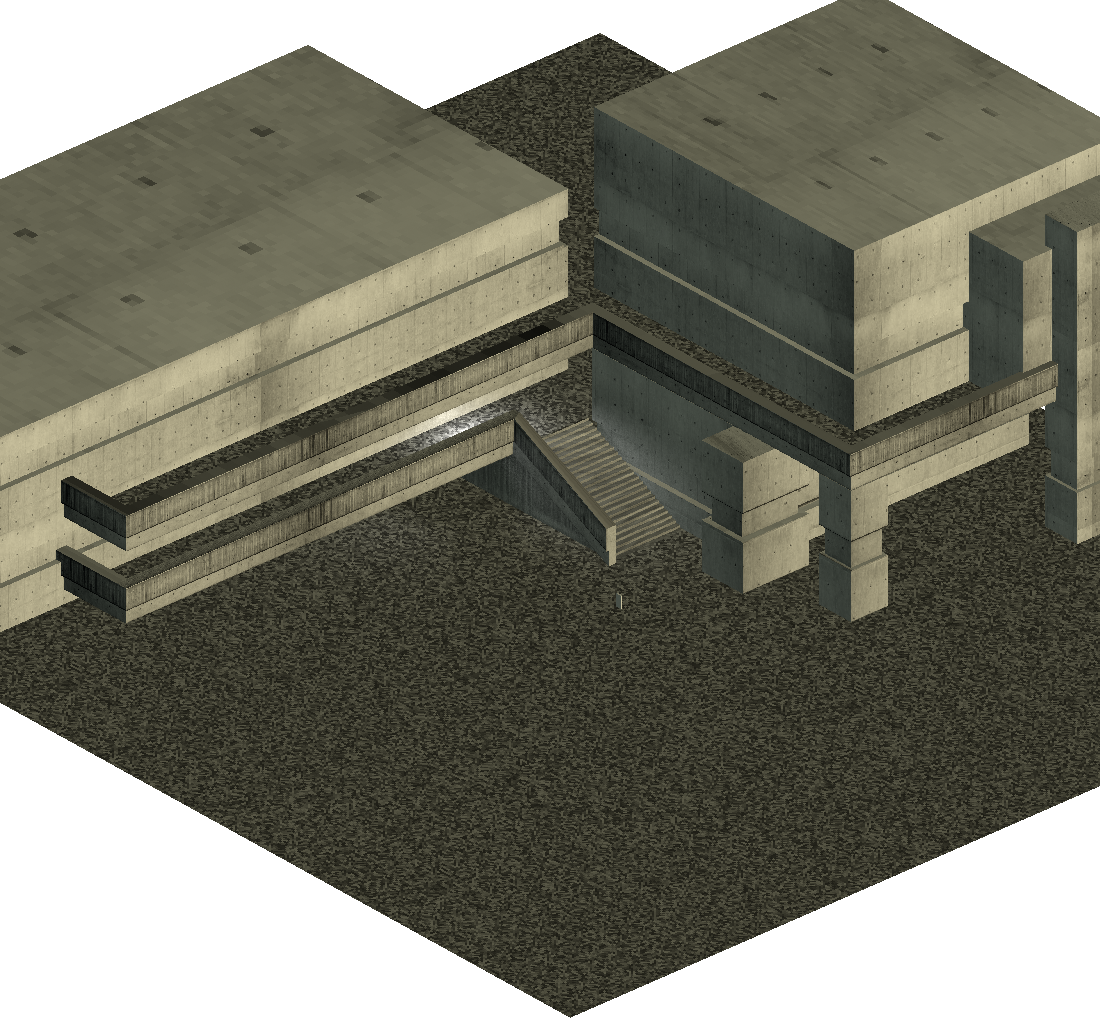 I eventually decided to use a 3d-isometric look, 2d just wasn't gonna cut it. This version still lacks the colorful dynamics of later maps, it is rather bland.